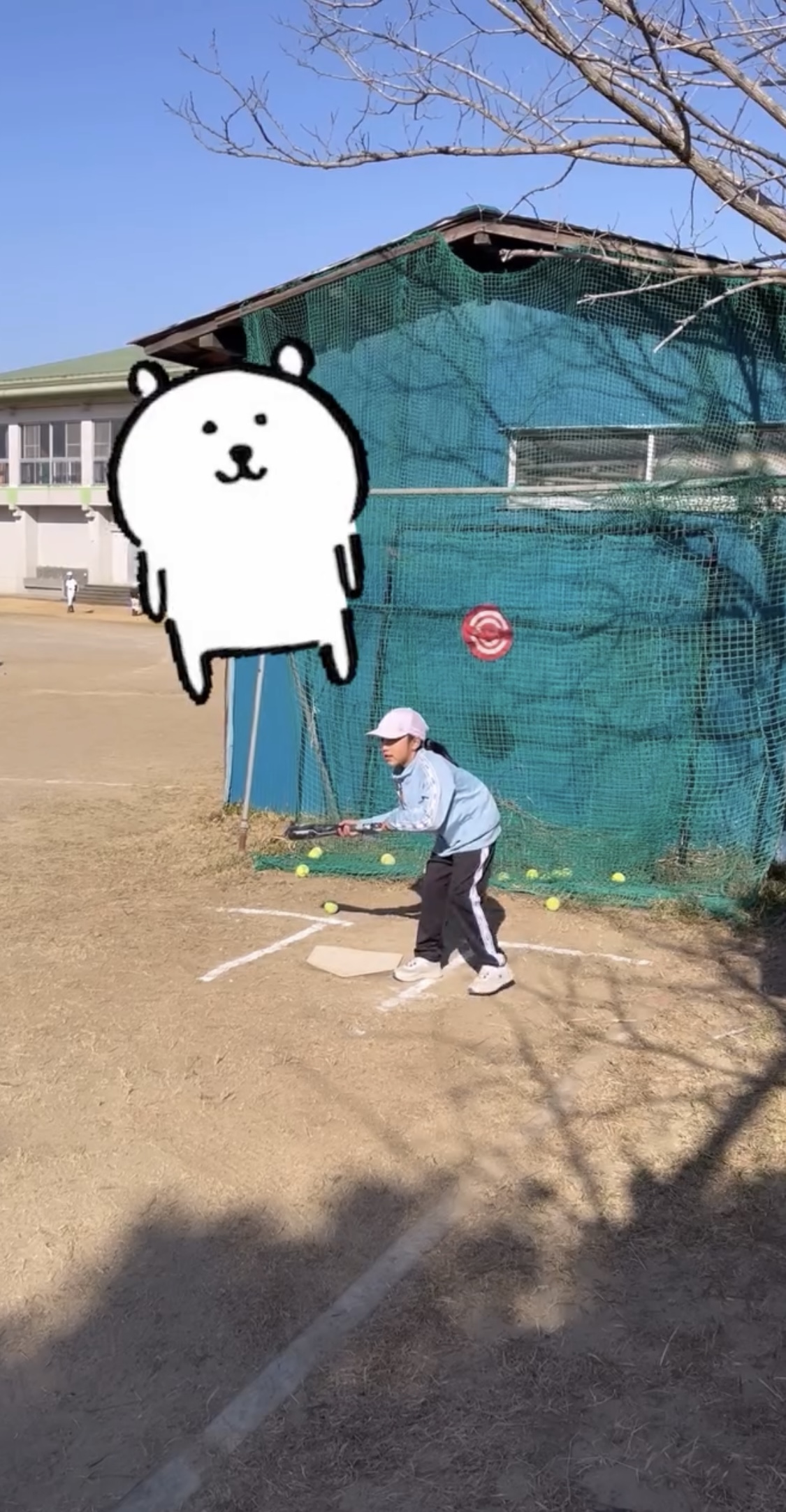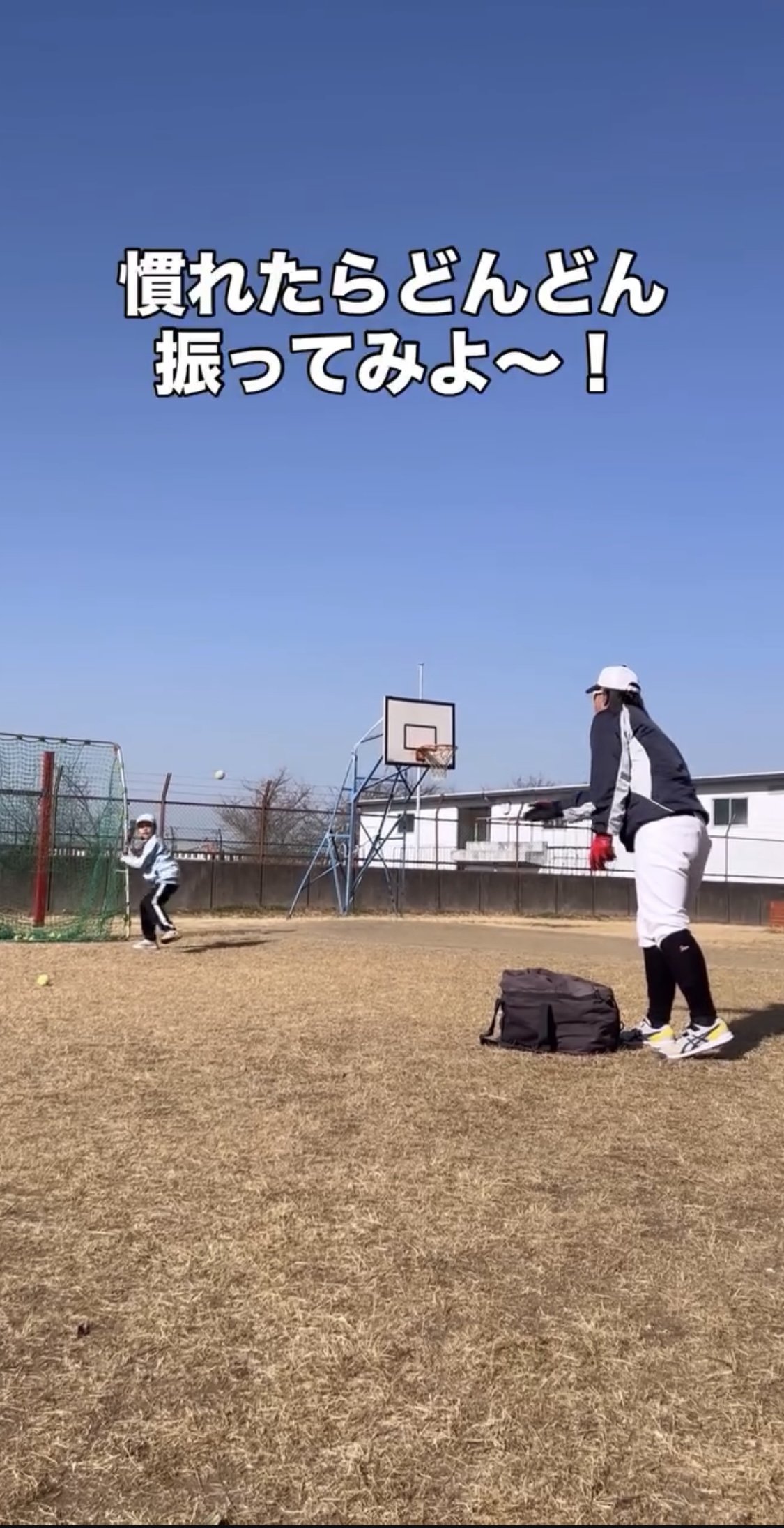 次はバットにボールを当てる練習!!